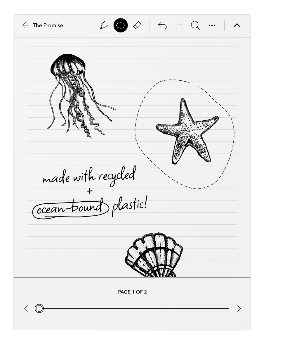 Som en del av vårt åtagande att använda mer hållbara material i Kobo-läsplattor har vi tillverkat Kobo Elipsa 2E med återvunnen och havsbunden plast samt återvunnen magnesiumlegering. Förpackningen är också mer hållbar. Ta reda på mer på kobo.com/eco