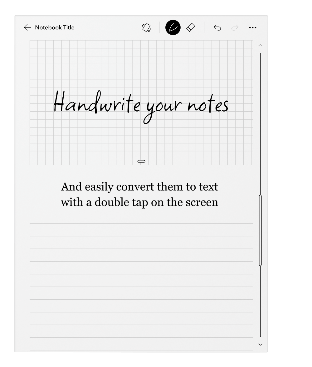 Skriv direkt i e-böcker och PDF-filer* med Kobo Elipsa 2E:s förbättrade anteckningsupplevelse. Skapa och organisera anteckningsböcker som kan göra mycket mer än pappersversionen och exportera dem med din önskade integrerade molntjänst. Läs och skriv bekvämt på en 10,3 tums pekskärm med ComfortLight PRO för att minska blått ljus och ansträngningen för ögonen. Lyssna på ljudböcker från Kobo genom trådlös Bluetooth®-teknologi†. Med 32 GB lagringsutrymme kan du ta med dig hela ditt bibliotek och alla dina anteckningar vart du än går. Den miljömedvetna Kobo Elipsa 2E är tillverkad med återvunnen och havsbunden plast och är utformad för att ta tillvara alla dina geniala idéer.